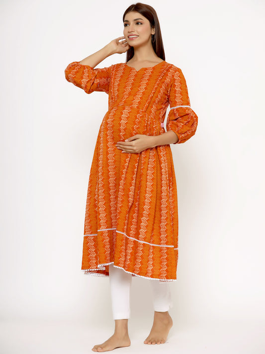 ZigZag on Orange Maternity & Nursing Kurta