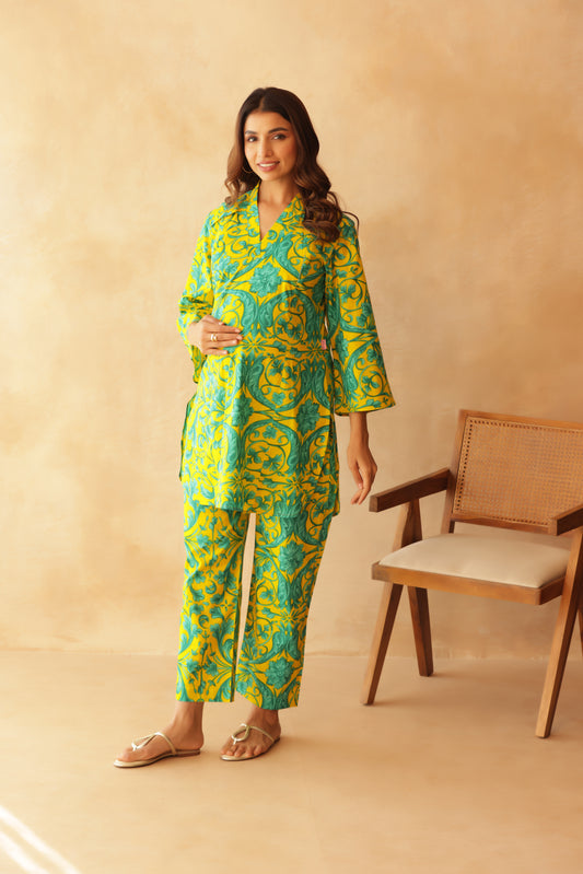 Teal Fleur on Yellow Maternity & Nursing Co-ord Set
