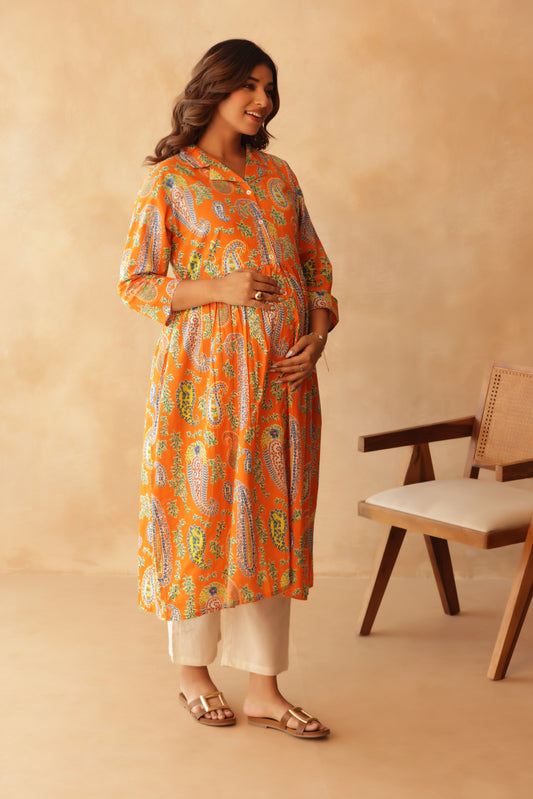 Tangerine Paisley Maternity & Nursing Kurta