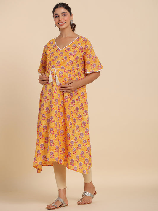Vibrant Sunflower Maternity & Nursing Kaftan Kurta