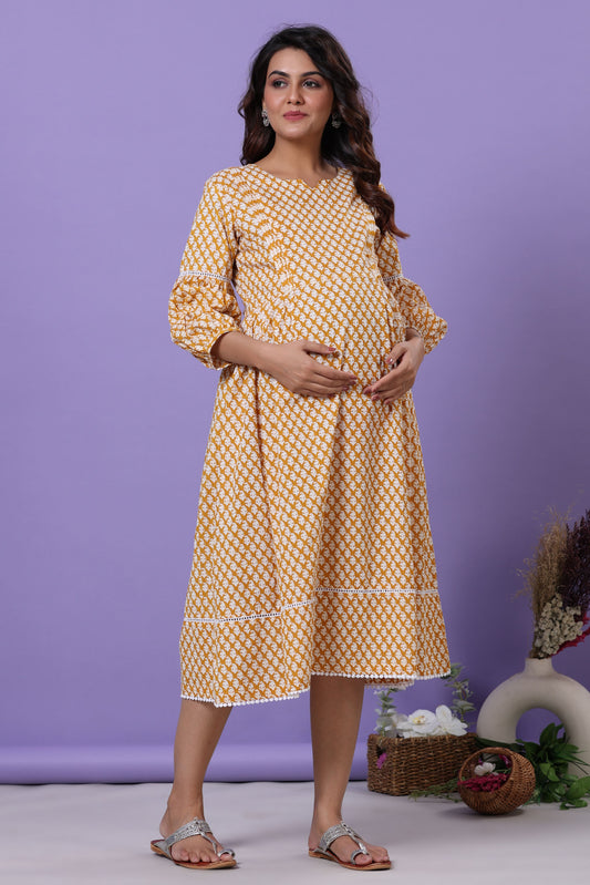 Minimalist Motif On Yellow Maternity & Nursing Dress