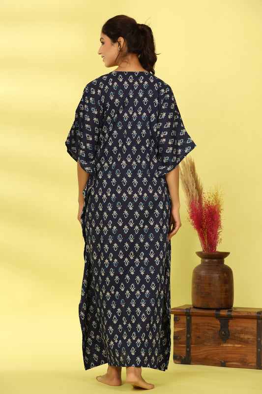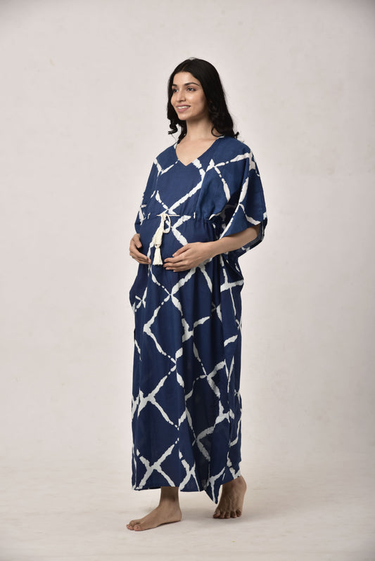 Nature's Indigo Canvas Maternity & Nursing Kaftan