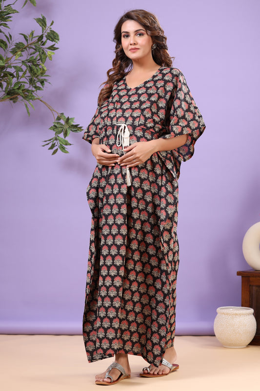 Gulmohar On Orange Maternity & Nursing Kaftan