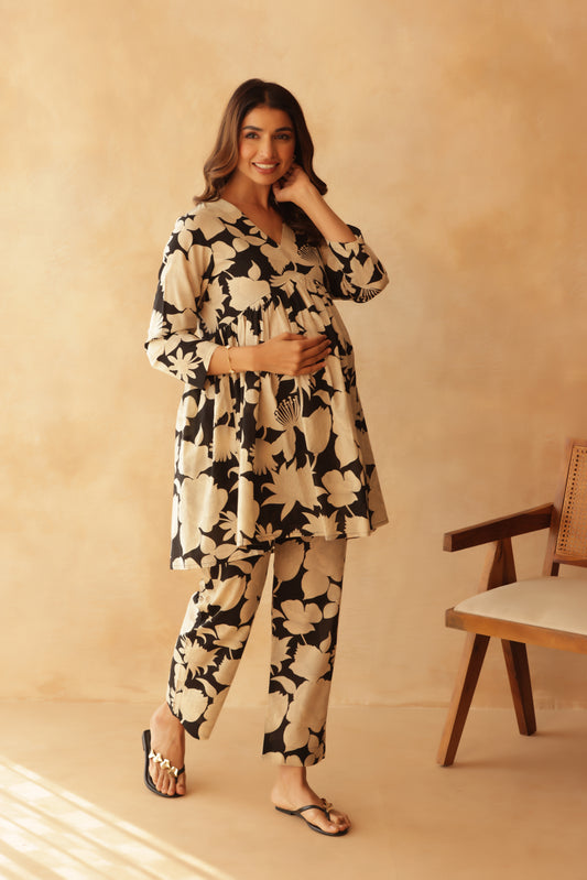 Noir Floral Affair Maternity & Nursing Co-ord Set