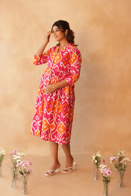 Kaleido Ikkat Buttoned Maternity & Nursing Dress