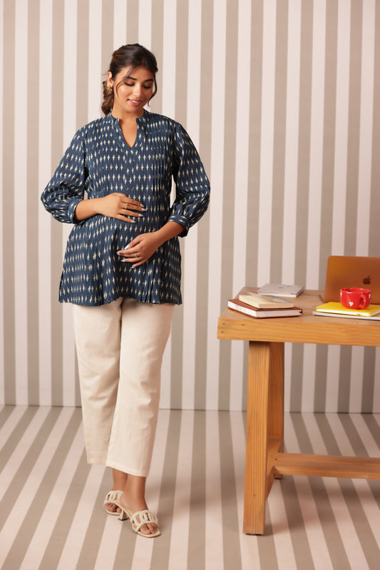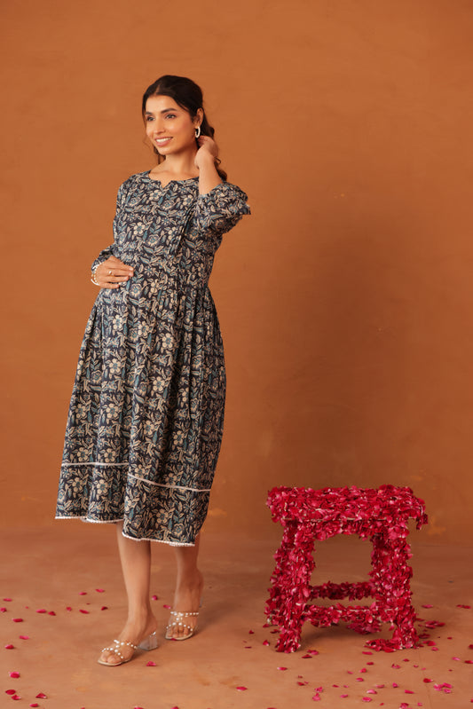 Mitti Neel Ikkat Buttoned Maternity & Nursing Dress