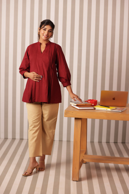 Muted Maroon Bloom Maternity & Nursing Kurta Pant Set with Dupatta