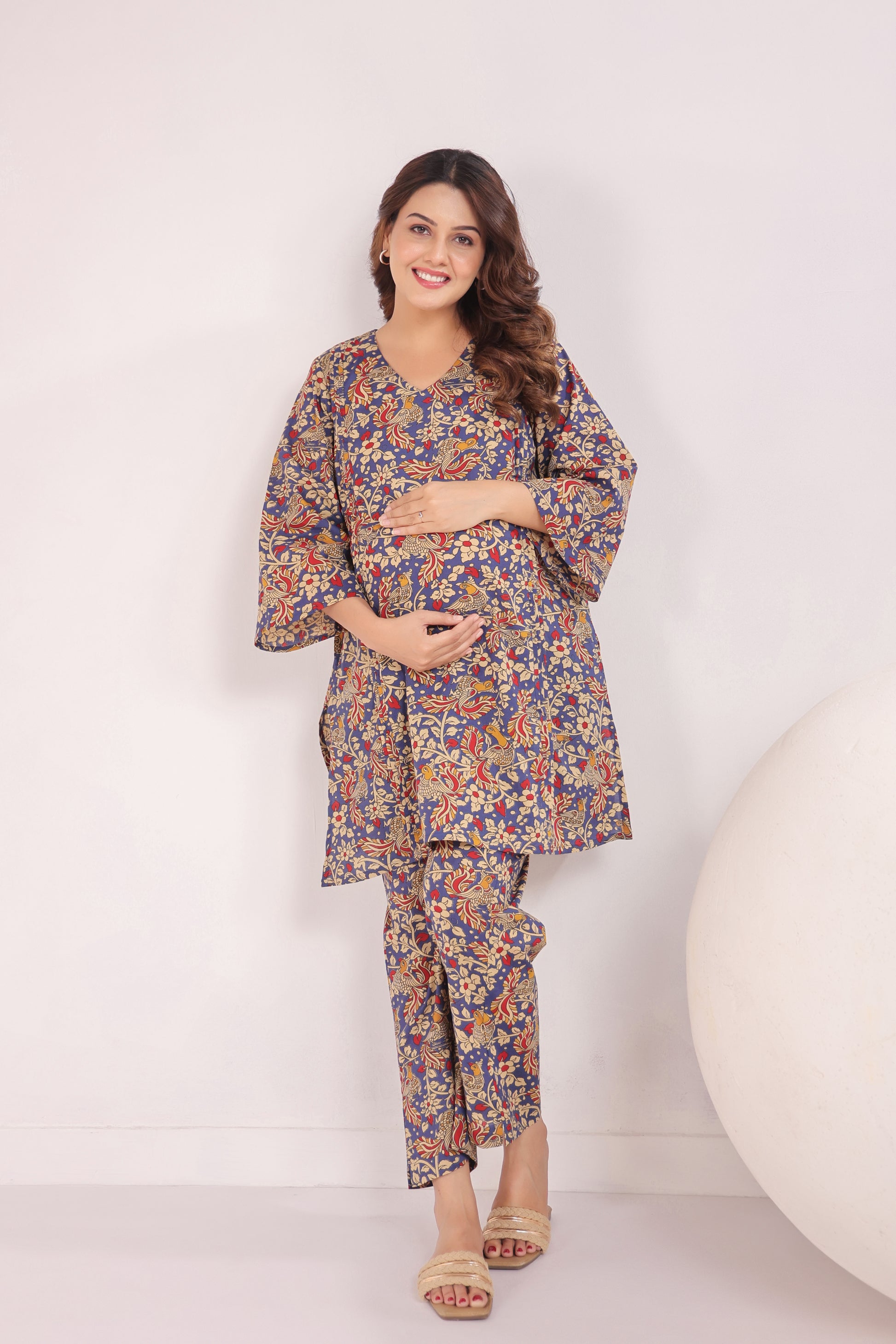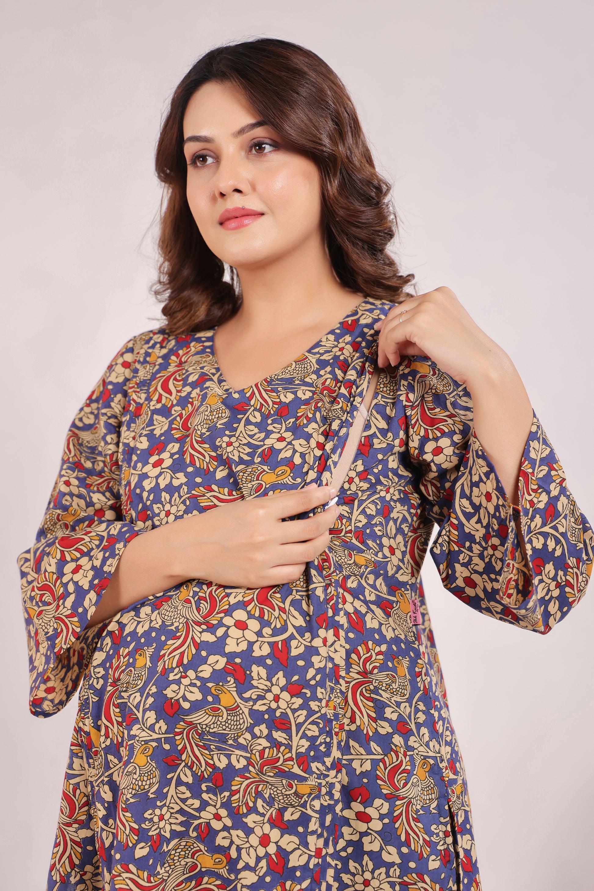 Blue Kalamkari Maternity & Nursing Co-ord Set