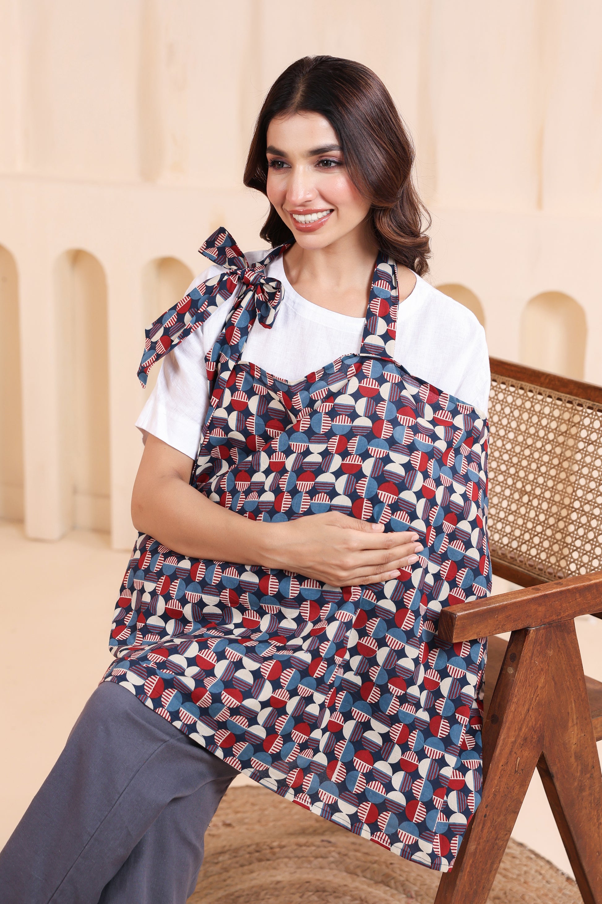 Nursing cover is a must-have breastfeeding accessory for every new mom. This article is perfect for the modern moms who are breaking through the hesitation to feed their babies in public. Our apron style maternity nursing cover is made from premium cotton fabric to provide full coverage and comfort for both you & baby. Featuring easy tie-up style, relaxed fit, asymmetrical design and proper fastening at the back for an adjustable fit! It's very stylish and functional. It is a must have item to have in your bag and comes in beautiful colors to match your outfits.