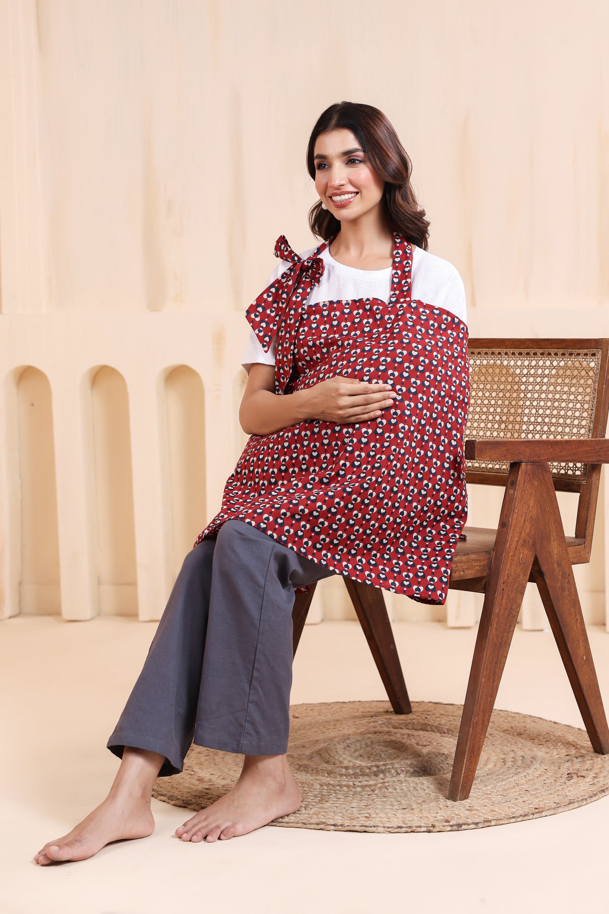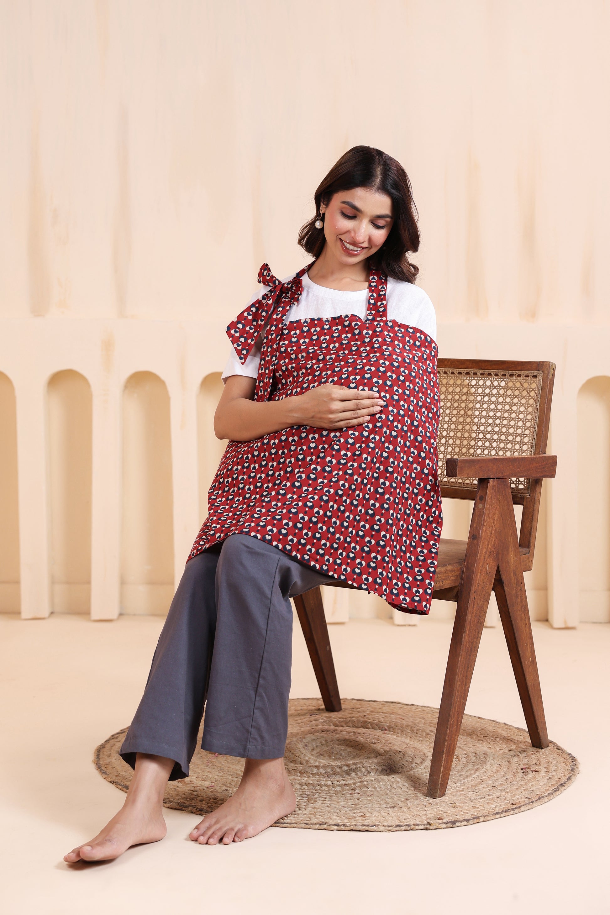 Nursing cover is a must-have breastfeeding accessory for every new mom. This article is perfect for the modern moms who are breaking through the hesitation to feed their babies in public. Our apron style maternity nursing cover is made from premium cotton fabric to provide full coverage and comfort for both you & baby. Featuring easy tie-up style, relaxed fit, asymmetrical design and proper fastening at the back for an adjustable fit! It's very stylish and functional. It is a must have item to have in your bag and comes in beautiful colors to match your outfits.