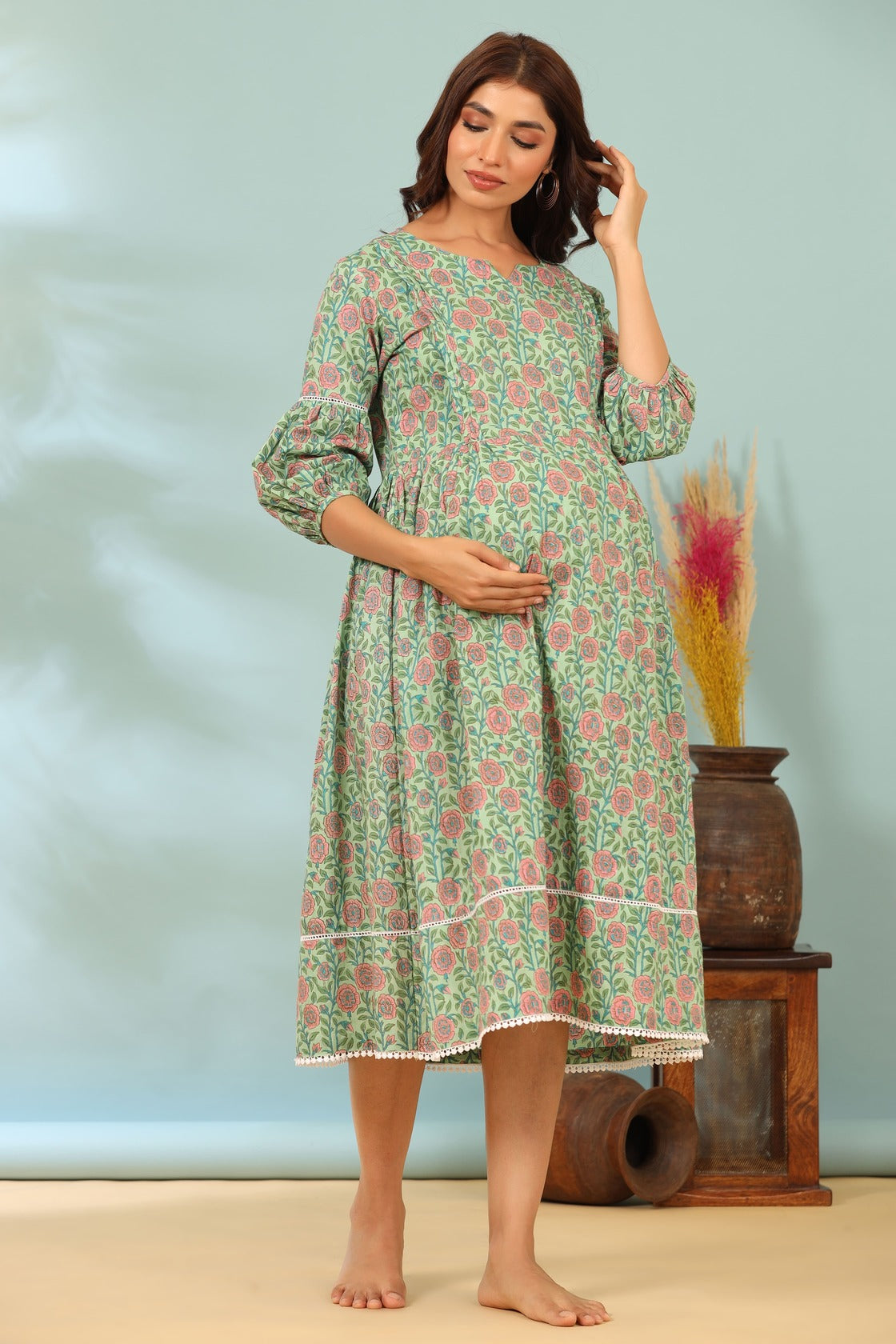 Up your style game with our Spring Whisper Maternity & Nursing Dress. Keep cool and comfortable with this versatile and trendy dress, perfect for any new mom. Featuring a unique floral print, this dress is sure to make a statement and make breastfeeding easier than ever.