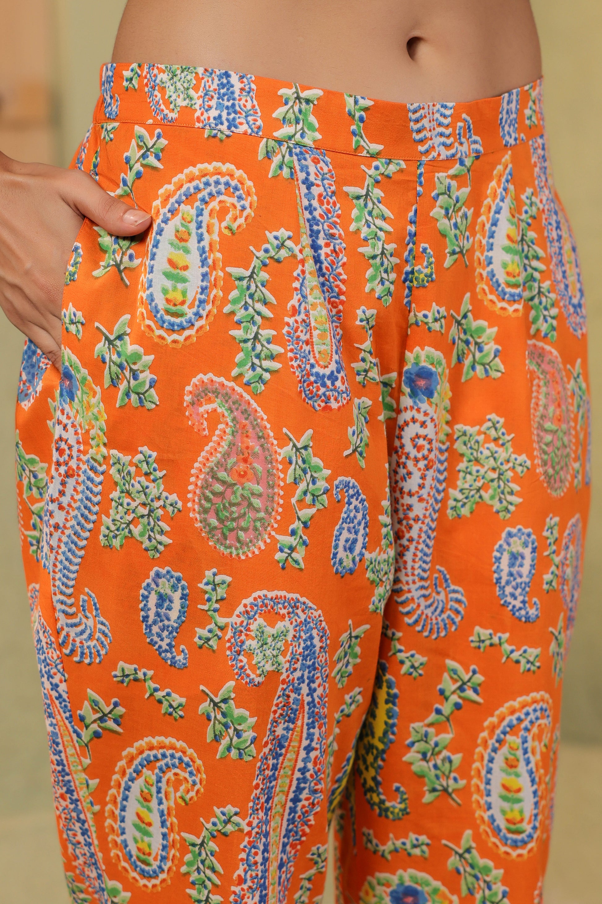 Add a splash of sunshine to your wardrobe with our Tangerine Paisley Cotton Co-ord Set. This vibrant duo blends silky smooth comfort with a playful pop of tangerine, perfect for turning heads and brightening your day. Whether you're out for a brunch or dancing the night away, this set will be your go to fit.