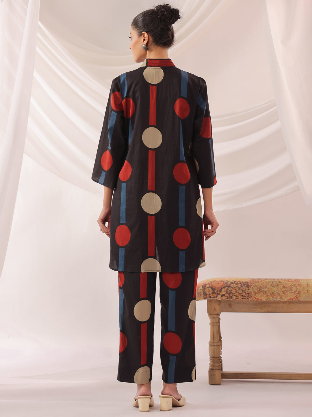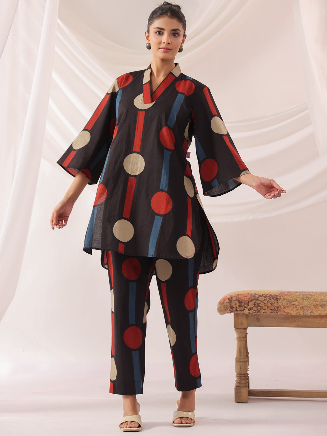 Bring out your wild side with Tribal Echo Black Cotton Co-ord Set! Made with comfortable fabric, this versatile set features a unique design. Perfect for lounging or a casual day out, it's the ultimate combination of style and comfort.