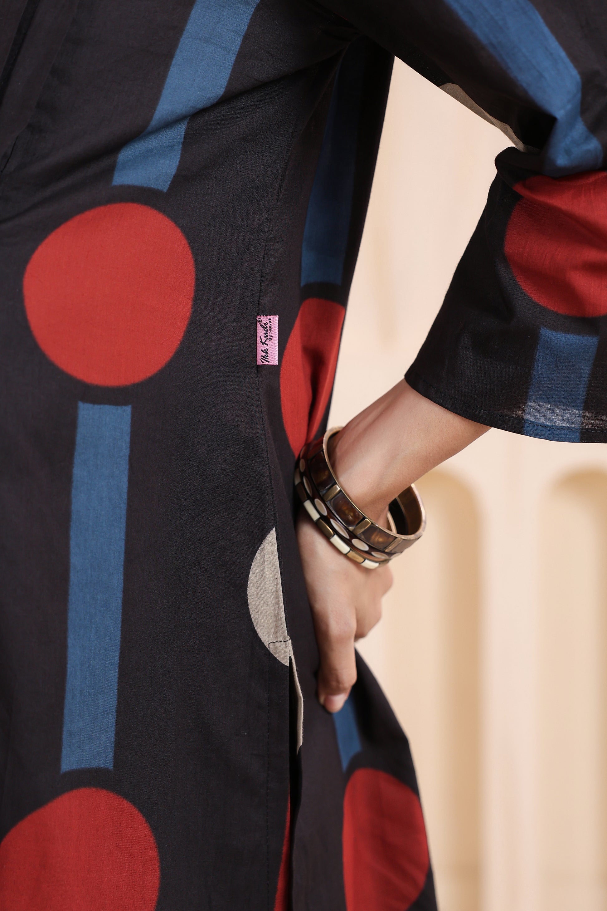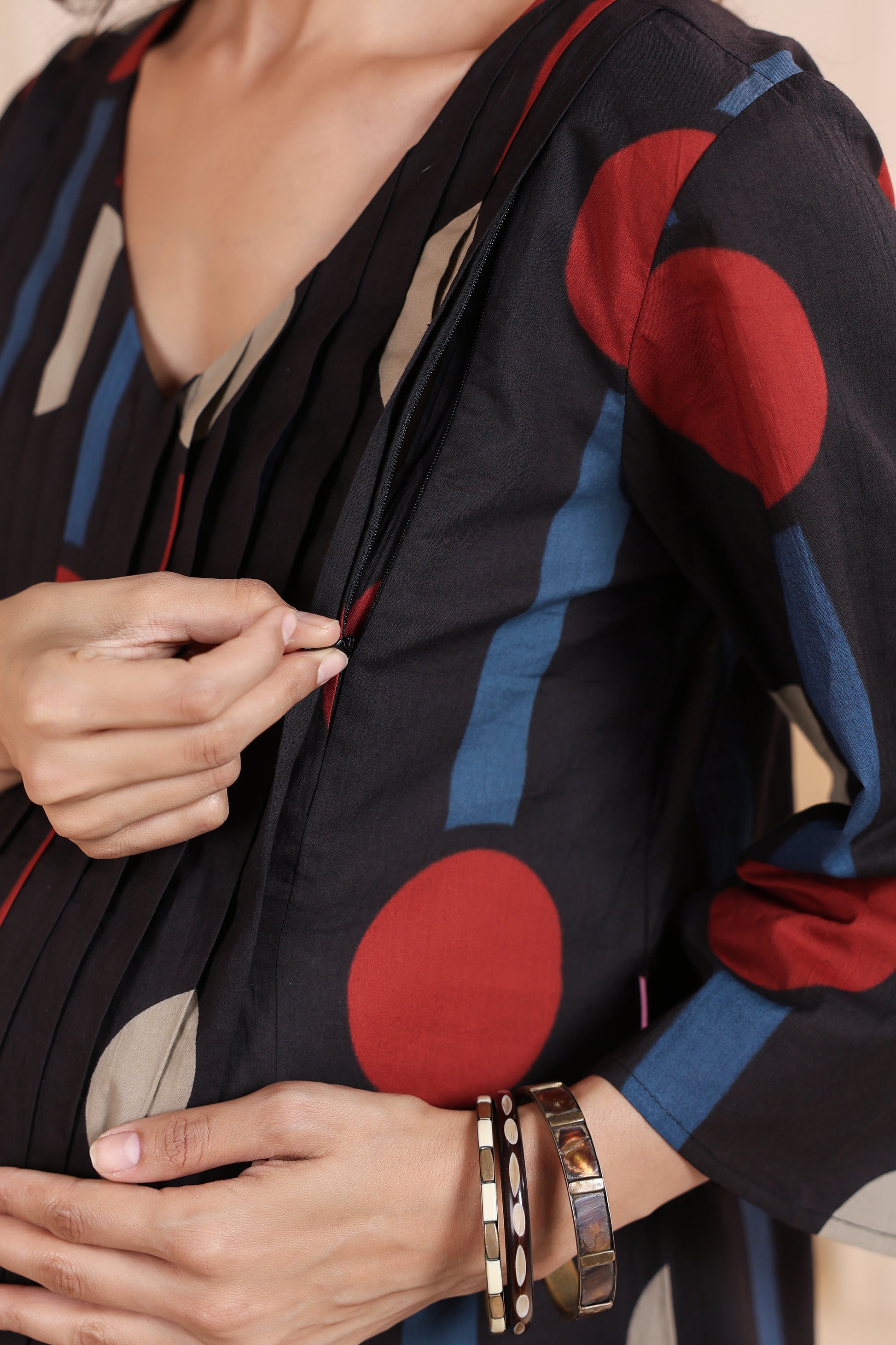Tribal Echo Black Maternity & Nursing Kurta Set